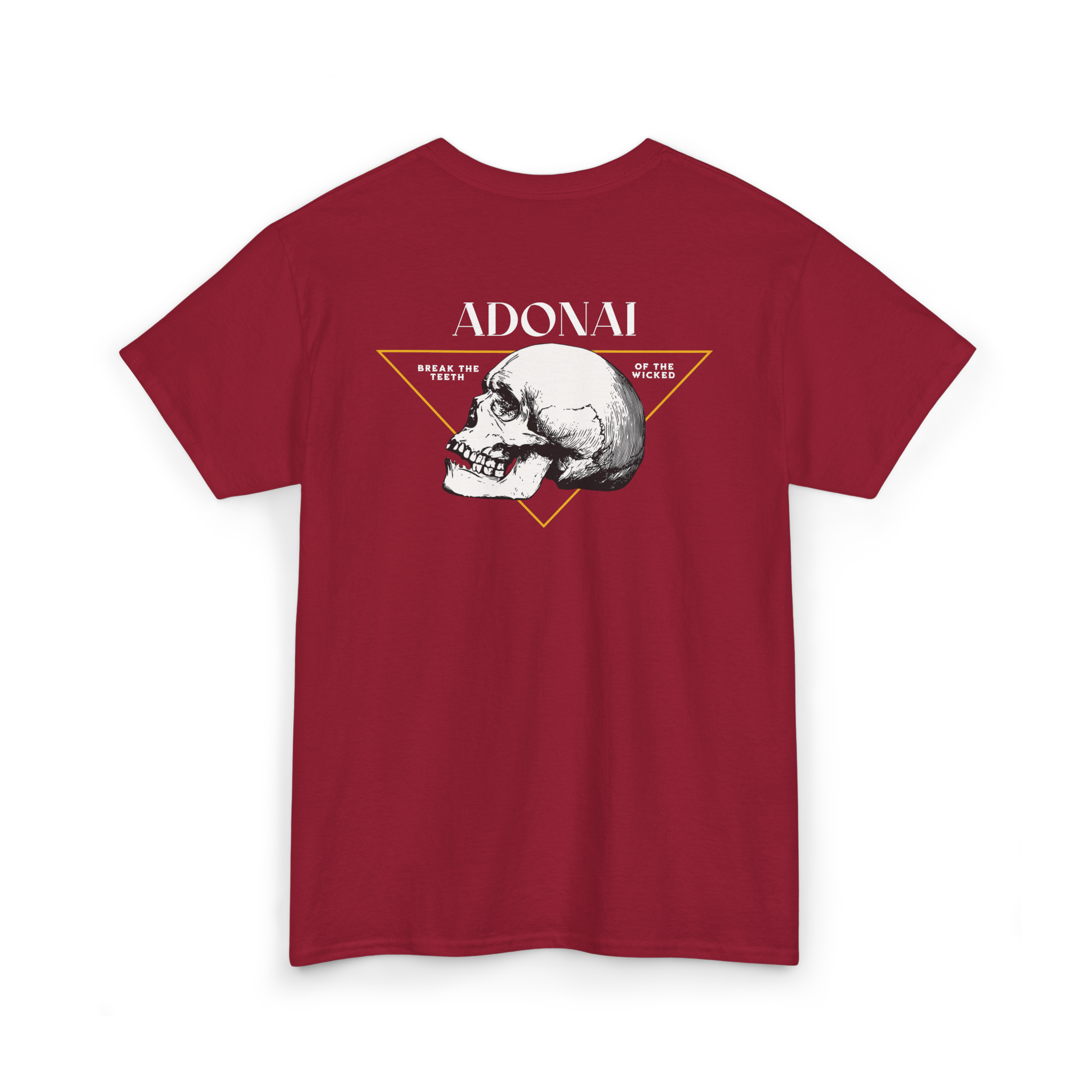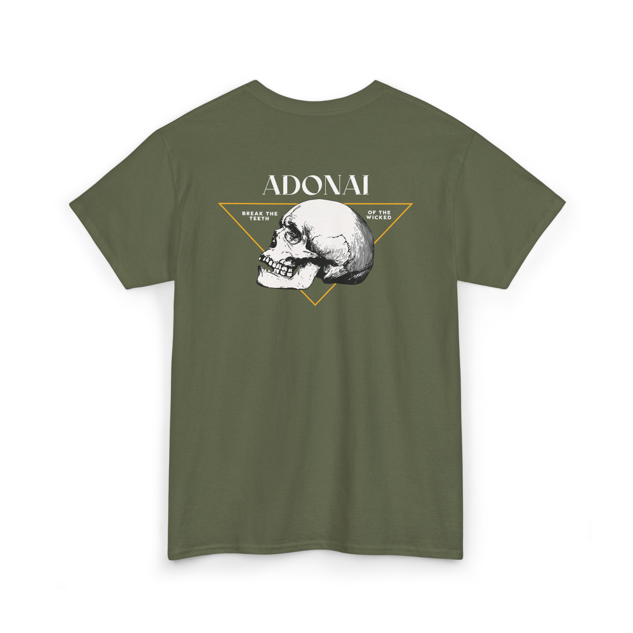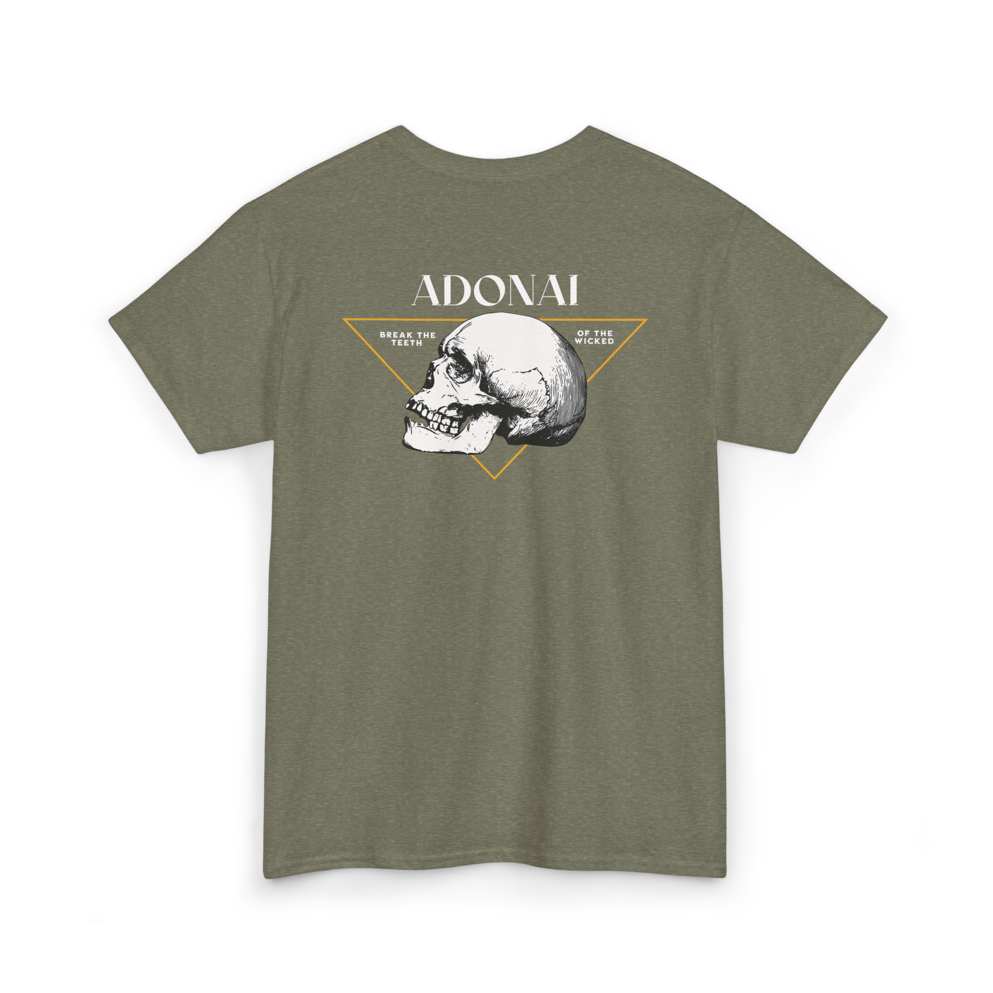 This design features “ADONAI” - one of the many names for God, a reminder of divine strength and protection.“Break the teeth of the wicked” echoes Psalm 3:7, a prayer for deliverance and justice. For military men, veterans, and Christian warriors, this design is a call to stand firm in faith. Wear it as a symbol of divine authority and strength. Stand strong in the shadow of the Almighty.
