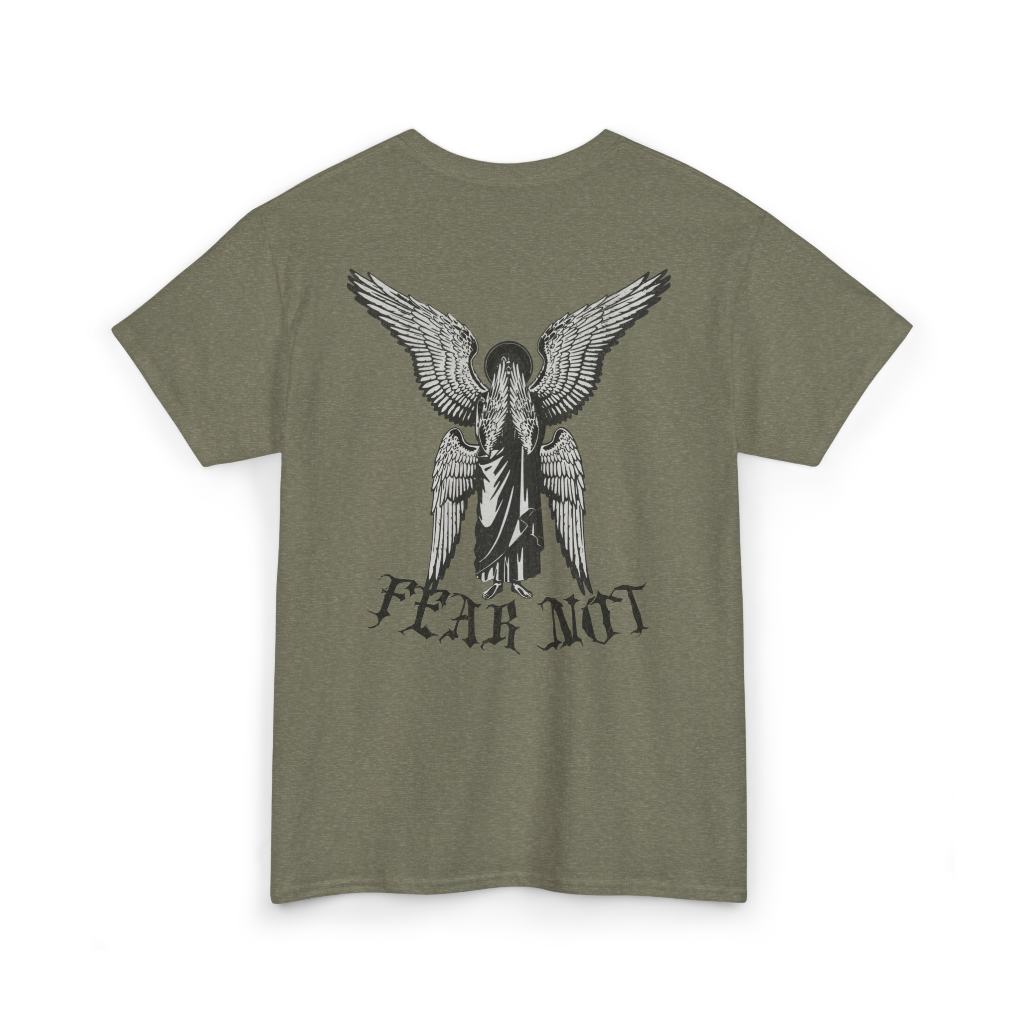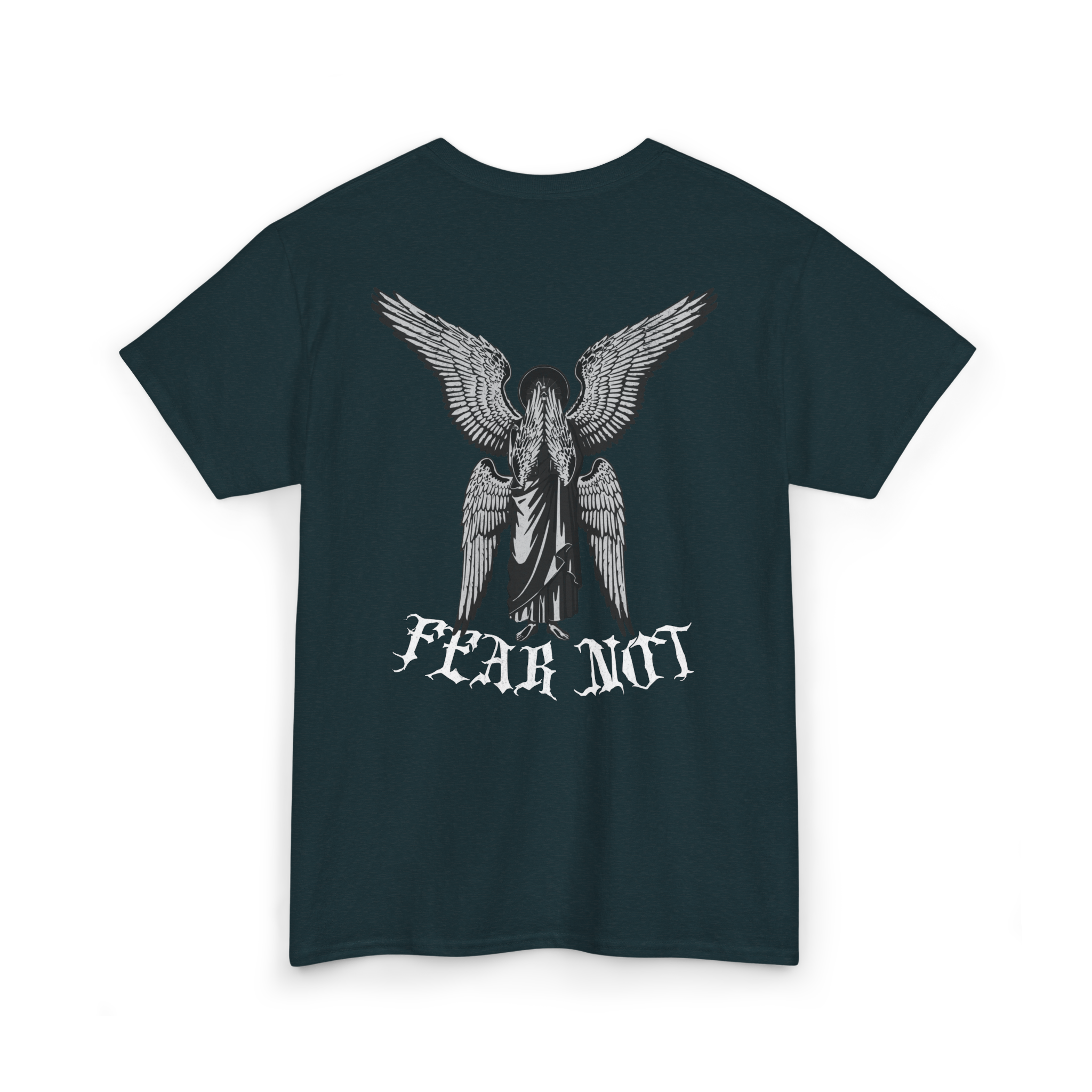 : Main Design is on the back of the T shirt. Includes a small design on the front left peck area.